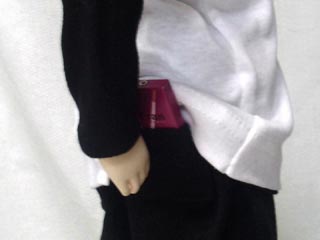 尻ポケットにはイチゴポッキーが。