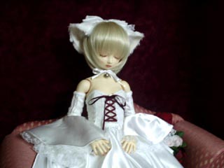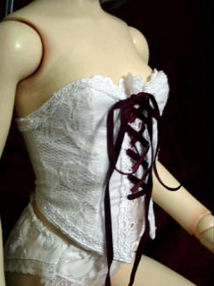 今まで緋霞の下着は店で買ったおパンツしか無かったので、 着替えのたびに乳丸出しなのも比較的アレだわと思い 「お洋服の下に着られる簡単なビスチェでも作るか」 と白の余り布で製作を開始しました。 「あんまり地味じゃつまらないのでレース布も使おう」 「丁度いいレースあるからコレ付けたら可愛いね」 「編み上げのリボンに白無いからワイン色でいいか〜」 と |